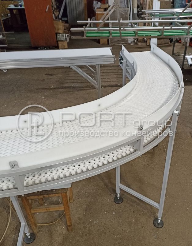 09.03.22 Для компании "Спектрум" (Spectrum) произведены и поставлены 2 конвейера для перемещения флаконов из термотоннеля и далее к каплеструйному принтеру для нанесения маркировки. На прямом конвейере установлена полиуретановая лента, рама и опоры алюминиевые. Поворотный - с модульной лентой. Скорость транспортеров регулируется шкафами управления.