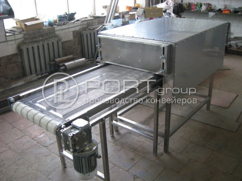 ГК Порт закончила работы по созданию конвейера для выпечки по заказу ООО ПЕКА. Устройство оснащено электромеханическим блоком регулировки скорости.